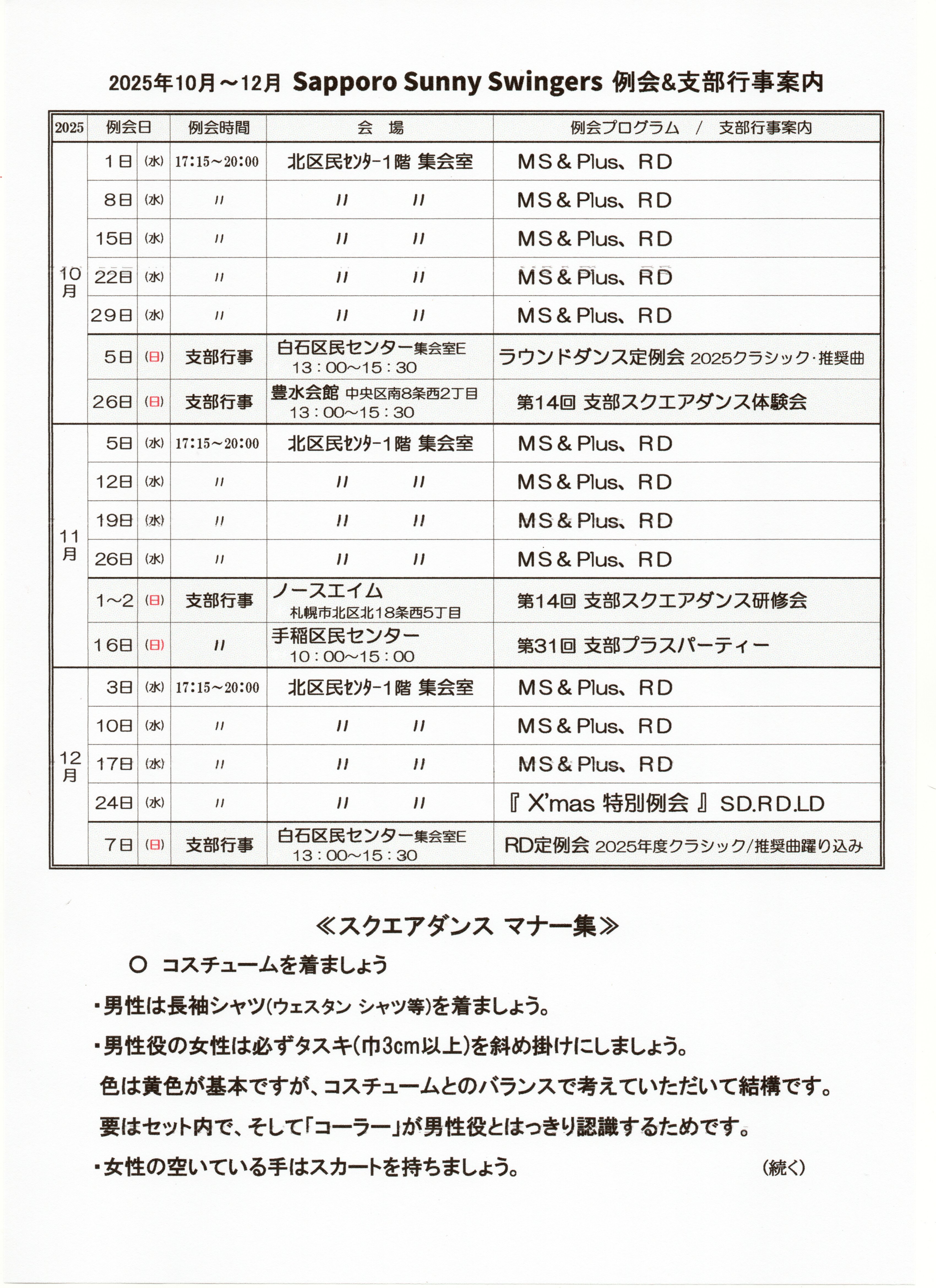 北の大地札幌のスクエアダンスクラブ Sapporo Sunny Swingers